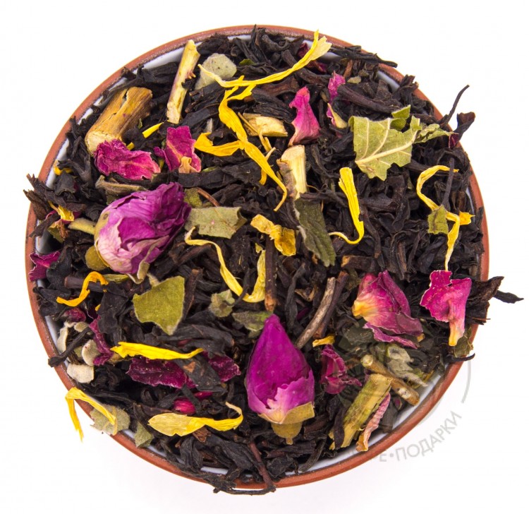 Чай черный кенийский, лист клубники, бутоны роз, лепестки календулы, лепестки розы, аромат апельсина
